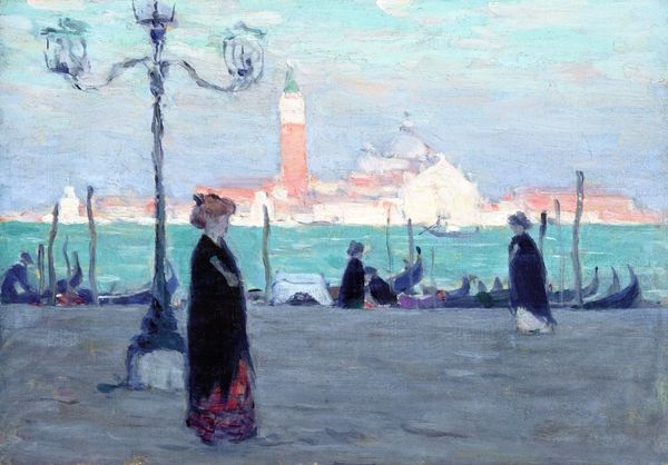 Clarence Gagnon made 'On the Rialto, Venice' with paint, probably oils, and feeling. The whole thing is built from these small, vibrant marks – yellows, blues, whites all dashed together, building a picture of this famous Italian scene. But it's more than just a pretty picture, right? Look at the paint itself; it's thick in places, almost like frosting. You can see the movement in his brushstrokes. The way the dark blues of the balustrade contrast with the sunny yellows in the background is really striking. And then there's that gondola right there in the center, it really draws your eye in. The figures look like a big swatch of black, but it is offset by the gold beneath it. Gagnon’s work reminds me a little of the Canadian Impressionist, James Morrice. Neither of them is afraid to let the painting be a record of the process, a testament to the fact that a painting is never really "finished," just abandoned. And that's something to celebrate, because art is an invitation, not a declaration.