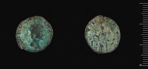 Curator: This intriguing piece, an Antoninianus of Cornelia Salonina, resides here at the Harvard Art Museums. It's a small coin, just over two grams. Editor: There's a certain melancholy to it, isn't there? That green patina whispers of time and buried histories. Curator: Absolutely. Think of the labor involved in minting countless coins like this one. Mass production, Roman style, all to project the image of Salonina, the empress. Editor: Imagine holding something handled by so many, traded for bread or baubles. It's almost dreamlike, a tactile link to a vanished world. Does it matter that the portrait is almost illegible now? Curator: Perhaps not. Its very survival, its worn surface, speaks to something larger than imperial vanity. Consider what this little thing was *made* to do. Editor: I like that idea – utility and beauty, all worn down by time and the hands of so many. Curator: Precisely! A small object carrying so much.