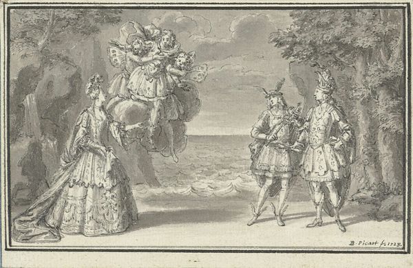 Editor: This is “Duel tussen de Horatii en Curiatii,” a pencil drawing made in 1793 by Ludwig Gottlieb Portman, now at the Rijksmuseum. I find it interesting that it looks so much like an engraving; given the "old engraving style" quality, I'm curious, what do you make of this piece, especially considering the medium? Curator: Well, consider the socio-economic factors at play here. Portman uses pencil, a relatively accessible material even then. But he meticulously imitates the aesthetic of engravings. Why? To democratize art? To cater to a market that valued the perceived prestige of engraving while operating on a budget? Editor: That's a good point. So the material itself has a story to tell about access and class, even though the image itself depicts this historical battle scene. Curator: Exactly. The "sketchbook art" designation suggests a certain informality, a working process. But then the dedication, time, and craft, pushes against the seeming sketch aesthetic. Do you think that this piece challenges, even inadvertently, the traditional hierarchy between high art and "craft"? Editor: Absolutely, focusing on the material really complicates the picture. It isn't just about portraying the classical story, it's also about who had access to what kinds of representation, and the social value attached to those means of production. It speaks to consumption of imagery too, as it creates value by approximating what might otherwise be more exclusive! Curator: Right, and consider the aged paper, or lack of heavy embellishment: Portman may not have thought the work to be finalized. The artmaking suggests many different avenues of accessibility at the same time as social stratifications. Editor: That’s given me a lot to think about. I definitely didn't see all those layers just looking at it initially. Curator: Indeed, looking closely at the materials used and the making process can really illuminate broader cultural meanings and challenges about what we value.