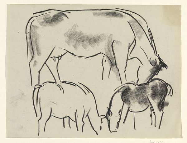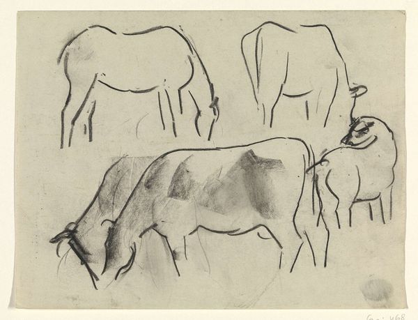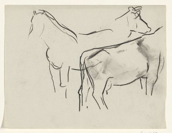 Leo Gestel made this study of horses with sketchy charcoal lines, and you know, it's all about the process. There is something so honest about a drawing like this. Gestel lets us see his working. The charcoal marks are raw and immediate. Look at the way he captures the shapes of the horses' heads with just a few strokes, it’s almost like he's thinking with his hand. The texture of the charcoal on paper gives it a kind of liveliness, like the horses could move at any moment. Each mark feels like a decision, a correction, a little experiment in seeing. This reminds me of other artists like Franz Marc who were also interested in the essence of animals. Art is just this ongoing conversation, right? No fixed meanings, just different ways of looking.