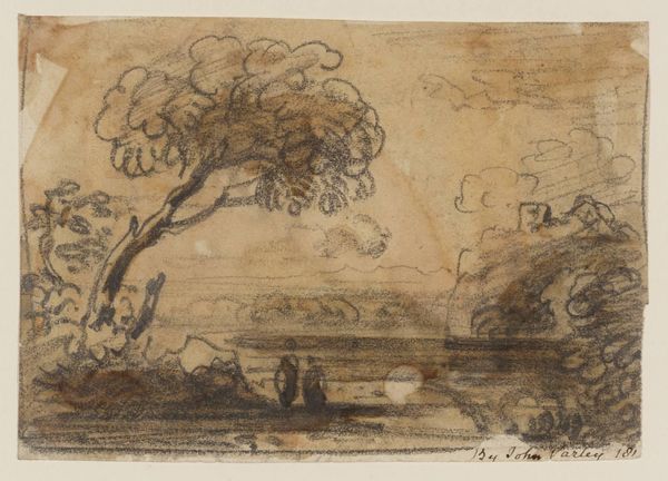 Editor: Here we have John Varley’s "Landscape with Trees," a small drawing in the Tate collection. It feels almost like a fleeting memory, a quickly captured impression. What do you make of its place in art history? Curator: Varley was contributing to a vital cultural project: defining and idealizing the British landscape, particularly as Britain was undergoing rapid industrial change. This image offers a romantic, perhaps even nostalgic, view of nature. How do you see that reflected in the drawing? Editor: I see it in the soft, undefined shapes, almost like a dream. It's certainly not a documentary approach. Curator: Precisely. Artists like Varley played a key role in shaping perceptions of national identity and rural life. It's a curated vision, if you will. Editor: So much more than just a pretty picture! Curator: Indeed, it reflects the complex politics of imagery and its role in shaping public perception.