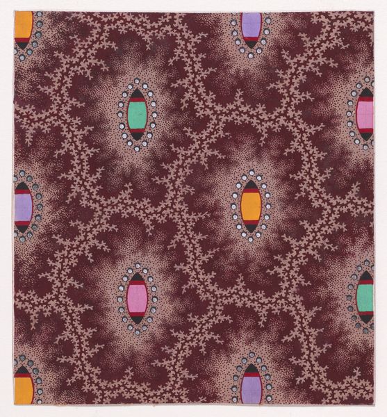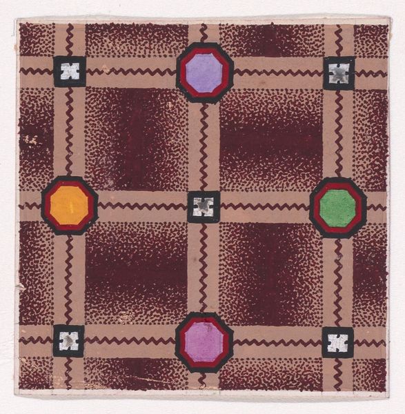 This textile design, crafted by an anonymous artist, presents a tartan pattern adorned with stylized clovers and pearl strips. The clover, a symbol deeply rooted in cultural memory, immediately draws our attention. Across centuries, the clover has appeared in various forms, from ancient Celtic art to medieval heraldry, often symbolizing luck and prosperity. Yet, within this design, the clover seems to transcend its conventional symbolism, evoking something primal, almost visceral. Think of Botticelli’s “Primavera,” where Flora scatters flowers, or even the floral patterns in Minoan frescoes. This motif resurfaces, evolved, each time carrying a whisper of its past incarnations, imbued with collective hopes. The way the pearl strips, like vertical threads of fate, intersect with the plaid, introduces a tension – the rational against the organic. It is an image that engages our subconscious, reminding us of the cyclical nature of symbols.