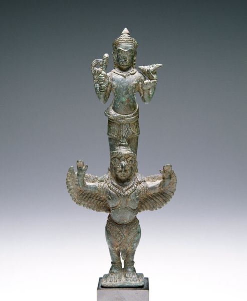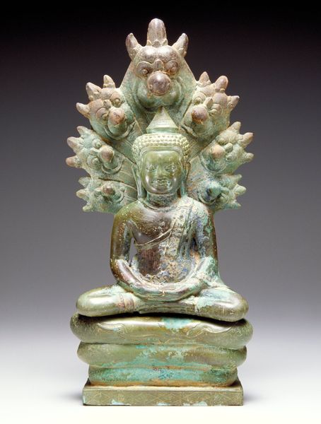 This Standing Buddha was likely made in Southeast Asia, using the lost-wax casting method. Molten bronze was poured into a mold to create the figure. It’s easy to overlook the ingenuity and skill that went into its making, particularly how the maker mastered bronze, a material that can be difficult to control. The figure's balanced posture communicates stability. The bronze adds to this effect with its substantial weight. Look closely, and you’ll notice refined surface details. The face shows a tranquil expression, and the flowing drapery conveys a sense of movement. These details would have required a highly skilled artisan, working within a long tradition of metalworking. The labor and expertise required to create this work are central to its spiritual and aesthetic power. Thinking about this making process helps us to appreciate not only the final object, but the rich context from which it emerged.