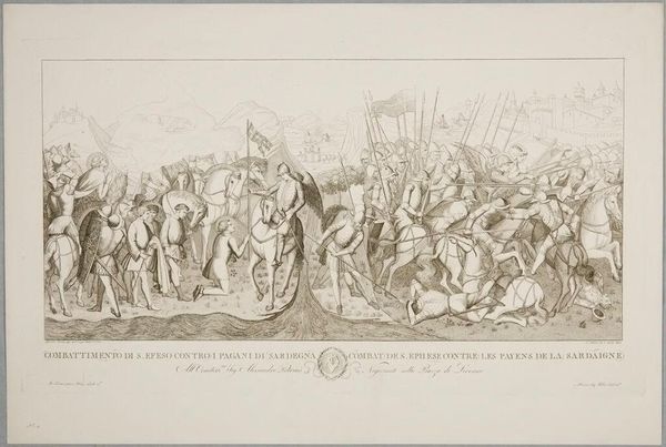 Editor: This is Moritz Steinla's "Strages ss. Innocentium." It depicts a chaotic scene, seemingly from a biblical story. Given the printmaking process, what material realities underpinned its creation and distribution? Curator: Consider the economics: engravings like this, were produced for a growing art market and broader consumption. How do the materials—the paper, the ink, the metal plate—reflect Steinla's economic position and the artwork's accessibility? Editor: So, it's less about the artistry and more about the conditions that enabled it? Curator: Exactly. The labor involved, the cost of materials, and the intended audience all shaped the final product and its social impact. Editor: Fascinating. I never thought about it that way. Curator: It transforms our understanding of the work.