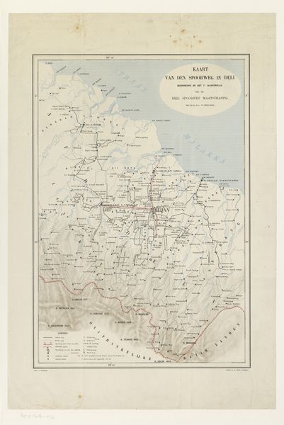 Curator: Here we have a lithograph titled "Kaart met de fietspaden op de Veluwe," or "Map of the bicycle paths in the Veluwe," created in 1921. It was produced by the Touring Club of the Netherlands, the A.N.W.B. Editor: It immediately evokes a sense of bygone adventures! It's monochrome, precise but also incredibly evocative with those tiny meandering lines implying so many journeys. It reminds me how people physically connect with landscape and the slow rhythms before mass motoring. Curator: Yes, it speaks to a time when leisure travel was experienced very differently. Notice the material: the lithographic process, the type of paper likely used…These maps were meant for practical use, folding, unfolding, encountering weather. We could talk about the implications of printed matter becoming increasingly affordable, thus enabling the rise of tourism for the everyman. Editor: Absolutely! It is full of rich symbols though. The wheel itself, of course, as an ancient symbol of the sun and cyclical return. The intricate network of paths, resembling veins, speaks to a collective desire to explore, map, and connect. This urge to chart and traverse reminds me of old cosmological diagrams. These weren’t just functional objects. Curator: Right, the network is particularly intriguing. This map creates the very idea of that landscape. The classification and commodification of it—it becomes something that one consumes. Consider that even today this area, Veluwe, is thought of foremost for the biking trails that have been so strongly emphasized. Editor: Yes, that interrelation of the symbolic and the very literal—that's something to consider! It reveals how we project narratives onto space. The Veluwe, presented here as a grid of potential escapades, turns cycling not just into transport but into almost a sacred ritual! Curator: I think we can both agree then that beyond its surface utility, "Kaart met de fietspaden op de Veluwe" tells a more elaborate story. It links consumer culture and visual meaning in rather evocative ways. Editor: Precisely. And understanding the web of these images enriches how we, even today, approach landscape.