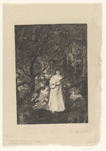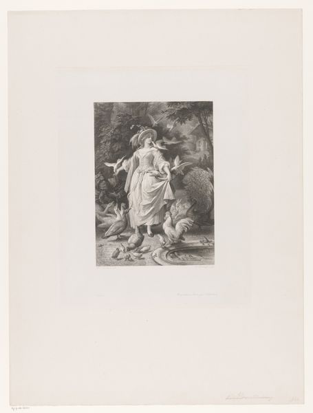 Curator: So, here we have "Woman by a Brook" by Hendrik Adriaan Christiaan Dekker, dating somewhere between 1846 and 1863. It's an ink drawing on paper. Editor: Mmm, a melancholy feeling washes over me immediately. It's quite a grayscale symphony; the tones remind me of old daguerreotypes. What strikes you first? Curator: The figure's pose, definitely. It echoes the classical "Venus Pudica"—a gesture of modesty—yet situated within a wild, Romantic landscape. She's both vulnerable and somehow mythic. The landscape is equally significant. What kind of messages do you find there? Editor: Well, it seems like a world both enveloping and alienating. The nude figure juxtaposed against this deep, shadowy forest plays on themes of purity, natural beauty, perhaps a fallen innocence. She is on the border of civilized existence in some ways. Does the stream serve as a purifying element? Curator: It very well could. Water is, across cultures, one of the most recognizable signs for purity and renewal, as is her nudity. She's poised at the edge of a transformative state, almost shedding a previous identity as she steps into something unknown. There's an odd mixture of romanticizing her figure, but making her deeply human. It's fascinating how those concepts come into contact. Editor: Yes! There's that hat and dress, discarded on the riverbank—remnants of her former life almost floating away. What if the dark woods aren't threatening at all, but rather invite a liberating act of self-discovery? That thought feels nice and much less bleak than what my initial reaction was. Curator: It certainly presents multiple interpretations! That discarded clothing is a physical representation of discarding societal norms. It speaks to an enduring tension between nature and culture, and that persistent longing to find something untainted, or an existence prior to our memories. What would you say, coming away from this piece, the central essence you perceive is? Editor: For me, it ends up being about the tension and ultimate freedom found in the transition. Like many good pieces of art, its truth and message reside in the in-between. It initially struck me as sorrowful, but it transformed into something else entirely. Curator: I couldn't agree more. The magic of these Romantic pieces lives in the tension between our desire for natural existence, and the cultural impositions that forever surround us.