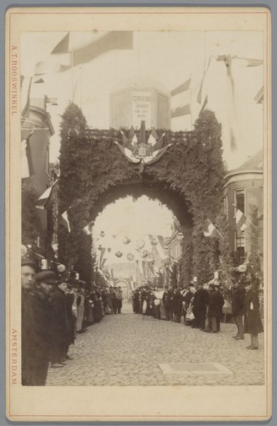 Joseph Dupont created this photograph on August 26, 1869, capturing the funeral procession of the painter Henri Leys in Antwerp. This image offers a glimpse into the cultural and social values of the 19th century. At the time, public displays of mourning were common and served to honor the deceased and consolidate community bonds. Looking closely, we see a crowd primarily composed of men, distinguished by their hats and formal attire, underscoring the social norms of the period which often excluded women from such public events. The elaborate draping and solemnity of the procession reflect a society deeply invested in ritual and respect for its prominent figures. Consider how the photograph not only documents an event but also subtly reinforces the prevailing hierarchies and customs. It invites us to reflect on the ways in which death rituals shape our understanding of community and identity.