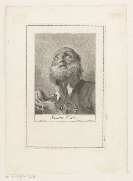 This is Giovanni Marco Pitteri’s engraving of the Apostle Simon. His weathered face and furrowed brow convey a profound intensity, but it is the saw resting on his shoulder that speaks volumes. The saw is Saint Simon's attribute, signifying his martyrdom by being sawn in pieces. This emblem transcends mere representation; it is a potent symbol that carries centuries of cultural and religious weight. We see echoes of this brutal iconography in depictions of other martyred saints, each bearing the instrument of their suffering as a badge of honor and faith. Consider the recurring motif of the weapon—be it a sword, a wheel, or in this case, a saw. It serves not only as a narrative device, recounting the saint's final moments, but also as a visceral reminder of human suffering and the ultimate sacrifice. This symbol engages viewers on a subconscious level, tapping into our collective memory of pain, resilience, and the enduring power of belief. The saw, therefore, is not merely an object but a symbol of unwavering faith, a recurrent theme throughout art history, continually reshaped and reinterpreted across epochs.