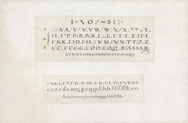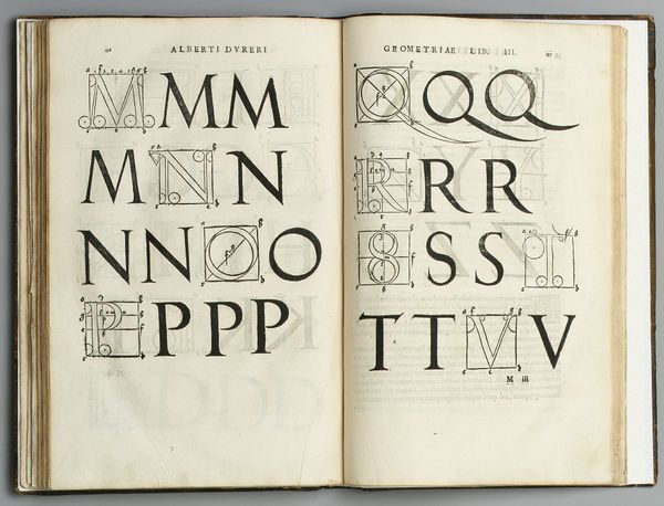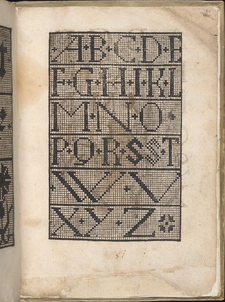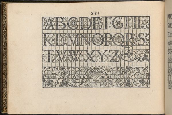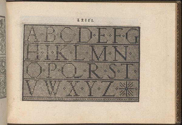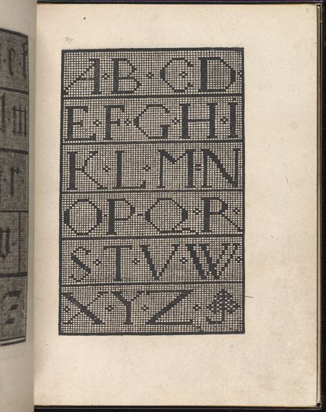 Editor: This is page 14 from *Libbretto nouellamete composto per maestro Domenico da Sera...lauorare di ogni sorte di punti,* created in 1532 by Domenico da Sera. It's a graphic art print demonstrating different letter styles, seemingly for textile work. I'm immediately struck by how contemporary the typography feels, even across centuries. What can you tell me about its broader cultural context? Curator: That's a fantastic observation. Indeed, though seemingly a simple instructional manual, this page reveals a complex interplay of social dynamics and artistic expression. The printing press democratized access to design, extending opportunities to a burgeoning merchant class and potentially to women. Who were now gaining new levels of literacy, even agency? Editor: That's fascinating. So it's not just about aesthetics; it's about who gets to participate in design and culture? Curator: Exactly! This page presents a series of stylized alphabets within a strict grid. What happens when these structured forms are used to embellish clothing and home goods? This artwork reflects and reinforces existing social structures and hierarchies by creating templates for decoration. Do you think fashion choices could reflect individual empowerment, resistance, or perhaps assimilation? Editor: I never thought about embroidery patterns as political texts before, but it makes perfect sense. It shows how even seemingly innocuous art forms can be loaded with cultural meaning. Curator: Precisely! Each cross-stitch contains hidden stories. Consider the gendered division of labor: women, often confined to domestic spaces, could subvert expectations through subtly subversive designs. It's amazing. Editor: This really makes me rethink the role of craft and design. I'll be looking at needlework with new eyes now! Curator: Me too. I never expected this conversation to be so fascinating.