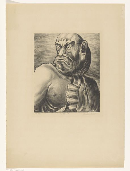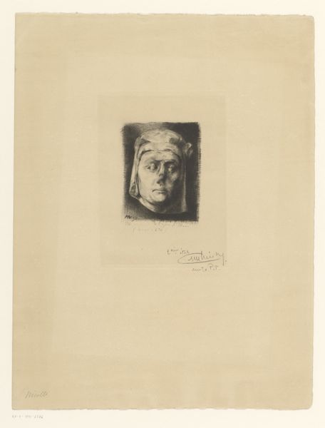 Curator: Welcome. We're standing before Kees Stoop’s intriguing self-portrait, “Zelfportret in ronde spiegel," a print made sometime between 1944 and 1990. The piece uses an intaglio technique, specifically etching, and resides here at the Rijksmuseum. What’s your initial impression? Editor: The intimacy of this tiny window into the artist's world is immediately apparent. The confined circular framing intensifies the already powerful gaze. There is an arresting quality to it, like catching a fleeting moment of introspection. Curator: Indeed. Stoop employs the circular mirror not just as a reflective surface but also as a formal device. The geometry adds a layer of complexity, contrasting with the somewhat softened textures created by the etching process. The meticulous cross-hatching creates depth and form, emphasizing the psychological weight. Editor: The material process itself seems to echo this theme. Intaglio, with its reliance on acid to carve the image into metal, hints at a kind of slow, corrosive unveiling. We are given a rare glimpse, and one can feel the labor that went into the etching. The image appears as the labor of looking into himself. Curator: I agree. And in this piece the window or gateway to the outside world appears beyond Stoop's reflected visage and also seems reflected in the same glass. The contrast seems carefully planned and subtly executed to evoke questions about inner versus outer reality. His subtle mark-making technique adds greatly to the affect. Editor: Certainly, there are many more details to behold here. Considering his artistic practice involved rendering landscapes from around the world, this artwork represents a stark contrast from that endeavor. In the case of his portraiture practice, though, this image reveals how much labor the artist undertakes while looking into one’s soul, and what they decide to hide from themselves as much as the world. Curator: Thank you for those insights. It allows us to reconsider Stoop's work. Editor: It was insightful to analyze with you, thanks for bringing the piece to our attention.