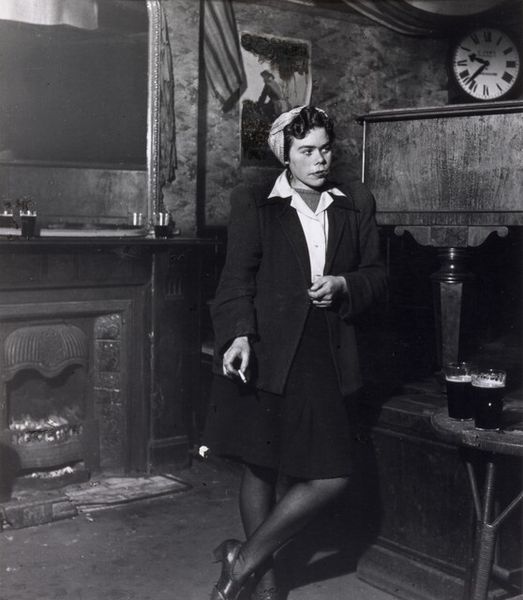 Since the early 1990s Sarah Lucas has challenged sexual stereotypes in a variety of provocative works. In this series of self-portraits she turns against the art-historical tradition of the female seductress or muse, and presents herself in a deliberately androgynous, and occasionally aggressive, series of poses. She adopts masculine gestures and stances, and shows herself in unisex clothing like jeans and T-shirts. These images also raise questions about the role and appearance of the modern artist. In contrast to the cliché of the artist as an anguished male, Lucas shows herself as an ordinary person in emphatically ordinary surroundings. Gallery label, August 2004