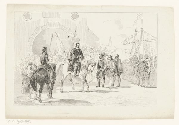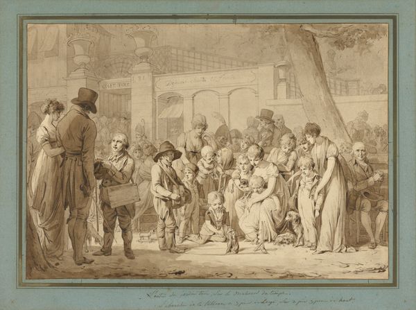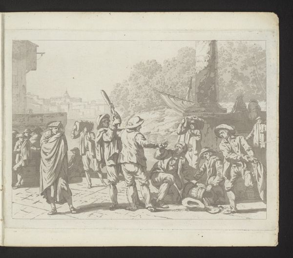Johannes Hilverdink created this print, "Koppermaandag met leprozenoptocht te Amsterdam," using etching. This piece gives us a glimpse into a little-known tradition in Amsterdam. "Koppermaandag," or Coppers Monday, was a day when craftspeople would visit their clients to present them with decorated prints or poems, often receiving a small copper coin in return. Hilverdink’s print depicts the annual parade of lepers through Amsterdam. Leprosy, a disease that causes disfigurement and disability, carried immense social stigma. This image challenges us to consider how society treats those who are marginalized. The lepers, set apart by their condition, are paraded through the city, becoming a spectacle for the "healthy" population. The exchange of gifts takes on a complicated tone here, when one group is so clearly ‘othered.’ What does it mean to give or receive when power dynamics are so unbalanced? The print serves as a historical record and as a poignant commentary on identity, health, and social inclusion.