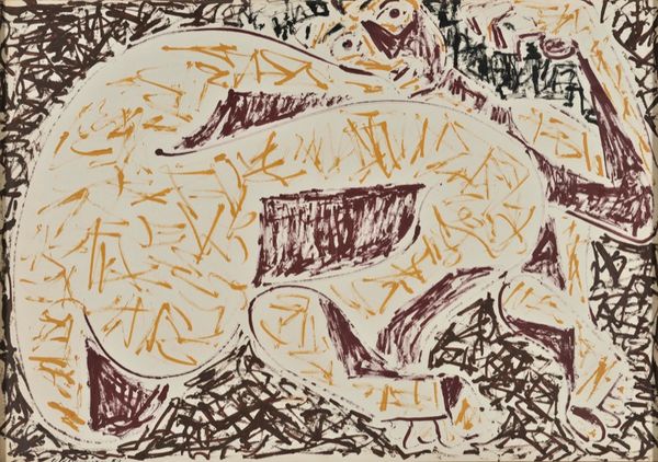 Andre Masson made this print, Metamorphose, and like the title suggests, it's all about change and transformation. Look at the green; it's not just flat, it's like a living texture, a mossy world where things are growing and evolving. The line is really where it’s at, though. It's scratchy and confident, describing forms that seem to be caught between one thing and another, like a face turning into foliage. I think about the surrealists and how they wanted to get into the unconscious, and how maybe drawing like this was a way to get there - a kind of automatic writing that isn't really written at all, but drawn. That dark patch near the top, is it a shadow or a solid form? Who knows! Masson shares something with Joan Miró here, with his biomorphic shapes and playful spirit. Both encourage us to see things not as fixed, but as always becoming something else.