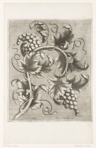 Editor: So, here we have "Festoen van vruchten," or "Garland of Fruit," an engraving made before 1624. It’s currently at the Rijksmuseum. Initially, I'm struck by how detailed the fruit is rendered, even though it’s just a print. What do you make of it? Curator: Ah, yes, a symphony in miniature! Isn't it wonderful how the artist conjures a sense of abundance and almost tactile realism, especially considering it’s pre-digital! You know, for me, looking at this print feels like stumbling upon a secret garden hidden in the heart of the Baroque era. Editor: A secret garden? That's a lovely way to put it. Curator: Well, consider the context. The Baroque was all about drama and exuberance. And still life, these ‘silent natures,’ were like little stages where artists could explore those themes. Think of each piece of fruit, those pearly grapes, as tiny actors in a carefully choreographed scene. The darkness around them, pressing close, makes their presence all the more poignant, don't you think? Almost as though this rich display of nature could exist even in the face of a looming, but unknown shadow. Editor: I never considered the darkness around them in that way. That adds a lot more depth! Do you think the type of fruit matters? Are there symbols? Curator: Oh, absolutely. Symbolism was rife! Grapes could signify blood and redemption, pears – love and longevity. These prints were never *just* pretty pictures. They carried layers of meaning for those who knew how to read them. This kind of abundance wasn’t always just about physical riches, often offering food for the soul as much as for the table, what do you think? Editor: It’s funny how something that seems so simple can have so much going on underneath the surface. I’ll never look at a bowl of fruit the same way again! Curator: Me neither! And isn’t that the joy of art? The endless layers waiting to be discovered?
