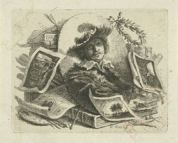 Curator: Here at the Rijksmuseum, we have an engraving from the period of 1683 to 1783. It's called "Putto in de kleding van een geestelijke maalt meel," which translates to "Putto in the clothes of a clergyman grinding flour," made by an anonymous artist. What’s your first impression? Editor: Well, it's undeniably charming. There's an immediate sense of focused industry, and that cherubic figure is undeniably compelling, though I sense an odd disjunction. The lines are so sharp and definite; you can feel the texture of the engraving, but the scene itself… Curator: Yes, that juxtaposition! The artist gives us a whimsical scene rendered with considerable technical precision. Tell me, what do you think is suggested by the linear structure evident across the image? Editor: I find that the parallel hatching, which builds volume and texture, actually constrains the playful theme. Look how meticulously rendered the folds of the cleric's robes are. It emphasizes the symbolic weight that these figures carry as putti assume clerical positions. Curator: Exactly! This could symbolize how the church touched on daily life back then, how everything, even grinding flour, could be seen as connected to God's work. Editor: Or even critiquing its all-encompassing reach. We must consider the use of iconographic motifs like this within a broader socio-historical context and also with a nod to religious authority. It presents as simultaneously reverent and mocking. I can almost hear the artist's mischievous chuckle. Curator: Yes! It's amazing how an artist can imbue what seems like a simple genre scene with this multi-layered meaning. This Baroque print captures not just a charming image, but the complex relationship people had with labor, religion, and society itself. Editor: The contrast between labor and humor is thought provoking here! I think this piece offers such interesting points for interpretation that engage imagination and visual delight for contemporary audiences, too.