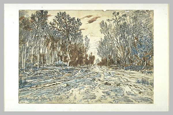 Curator: Here we have Mortimer Borne's "Mahopac Landscape," an etching printed on paper, created in 1945. Editor: There's a cool melancholy here. A kind of washed-out quality that pulls me right in, like an old postcard of somewhere half-remembered. Is that intentional or simply the characteristics of an etching printed on paper? Curator: Perhaps both. Etchings, particularly during this period, experienced something of a boom, because artists and the WPA needed ways to mass produce artworks. Its dissemination, in and of itself, made landscape art like this more widely accessible. Editor: Interesting. You know, I'm curious about how Borne handled the plate itself. Look closely at the line work, especially in the trees; he's not just replicating what he sees. The texture and layers feel deliberately built up. Curator: Precisely. This period of landscape art often acted as propaganda intended to define the American character, where landscapes promoted ideas about leisure and freedom in relation to home and land, after World War II, specifically. Editor: Hmmm. It reads as a somewhat sad escape route—almost bleak, no bright colors here, not a real utopia in sight—but I see your point. Still, what does this piece accomplish if it can't offer a glimpse of joy in labor or respite? Or offer an accessible narrative about the American pastoral, writ large? It all feels somewhat remote from the everyday reality of ordinary people. Curator: You’re not wrong, this image has a slightly unsettling, or maybe just removed, air to it. Consider, however, the social function and limitations imposed on artists to visualize idealized locales: what Borne might have wanted to depict is beside the point. Instead, the museum acquired this print to preserve this perspective as evidence. Editor: So we see a sliver of nature packaged for an imagined public, rendered through specific techniques and materials... which we still grapple with today. I appreciate Borne’s contribution on a more complex and thought-provoking level now. Curator: As do I. Thinking through the conditions of its production only enhances our understanding of the art object.