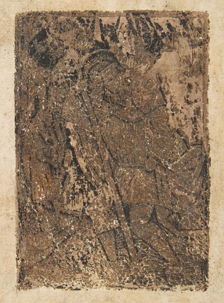 This work, Saint Franciscus, was created by an anonymous artist. The aged appearance of the artwork is due to the unusual technique of the surface being scratched into a dark background. The artist seems to have worked in reverse, like a printmaker, revealing the image by removing material. The fine lines create a sense of depth and texture, contrasting with the solid areas of the dark background. It’s a bit like scrimshaw, the art of carving into whalebone, though on a much more delicate scale. This approach to image-making— focused on removal and revelation—speaks to the qualities of the saint himself, who stripped away earthly possessions to find spiritual truth. The amount of work involved in creating this artwork is impressive, which highlights the degree of devotion that went into its production, imbuing this work with a unique cultural significance. So next time you look at an artwork, don't just consider what is represented, but how it was made. The materials and processes used can tell us so much about the context and meaning of a piece.