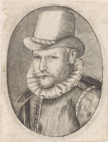 Curator: Before us we have Barthel Beham’s engraving “Erasmus Balderman” created in 1535, currently held in the collection of the Art Institute of Chicago. Editor: There's a striking somber quality to this portrait. The tight composition and the subject's direct gaze certainly command attention, almost as though he's assessing the viewer. Curator: Indeed, the composition is a masterclass in the manipulation of form and texture, carefully etching lines to give an astonishing three-dimensionality. Consider the meticulous detail of his garments juxtaposed with the clean, stark lines in the background; a visual balance creating dynamic tension. Editor: And consider the craft of printmaking at this time! It's not just about artistic skill; it's about understanding metallurgy, the labor of etching, the specific paper used, and even the socio-economic conditions that allowed for this type of print production to flourish. Did Beham make the paper himself? How did his labor practices differ from those painting similar portraits? These are tangible considerations. Curator: While materiality certainly informs context, it's vital to understand the image's internal relationships first. Note, for example, the inscription “MARCET SINE ADVERSARIO VIRTUS”—“virtue flourishes without opposition.” This inscription serves not only as a caption but contributes directly to the work's semantic field. Editor: But where does that sentiment come from? This piece, like many portraits, speaks volumes about status. Erasmus Balderman isn't just anyone; his portrayal and inscription signal the subject’s intellectual virtue to his peers, and, indirectly, suggests the aspirations and biases of those who might acquire and collect such a portrait. It reflects a culture of display, knowledge, and perhaps, social maneuvering. Curator: Nonetheless, to view the image solely through the lens of social utility is to negate Beham's virtuosity as a graphic artist. The delicate shading around Balderman’s eyes and the treatment of the subtle curves of his hat function primarily as pictorial, not societal statements. Editor: Yet, even that so-called “virtuosity” relies on the ready availability of materials—copper plates, inks, paper. To me, all the choices made from a printmaker's shop affect the final product’s artistic meaning. The lines and textures we see become so closely related to process, that it can’t simply be reduced to aesthetics. Curator: An insightful consideration, perhaps we have only scratched the surface, but thank you for your views. Editor: Likewise. Thank you for illuminating Barthel Beham’s detailed craftsmanship within the complex landscape of the Renaissance print world.
