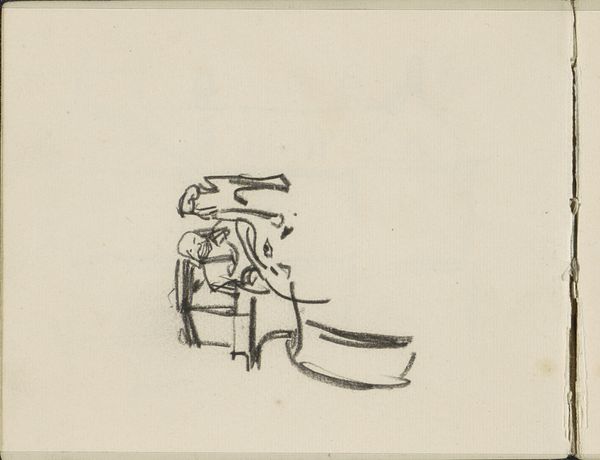 Curator: Well, well, what do we have here? This captivating work comes from the hand of the ingenious Japanese artist, Katsushika Hokusai. It is an ink drawing from the Ukiyo-e tradition entitled "Zittende man, op de rug gezien" – or, "Sitting Man, Seen From the Back," created sometime between 1780 and 1849. Editor: The curve of his back, hunched like that. Makes you wonder what burdens he carries, doesn't it? And yet, there’s something almost… peaceful about the way he's settled there, so still in this composition. It almost gives me the sense he might be content despite those apparent burdens. Curator: Indeed, the visible technique here emphasizes his socio-economic situation; consider the artist's conscious material and distribution choices, for example. Note the economical use of ink and paper that nonetheless encapsulates such feeling. It certainly implies much of the reality surrounding artistic practice in his milieu. It could be reproduced easily as well for maximum circulation, as this tradition afforded at that time. Editor: Absolutely. The sparse ink lines—they remind me of fleeting thoughts, impressions quickly captured on paper. It's not just a depiction of someone sitting, but a feeling of being alone with oneself, maybe lost in contemplation, something which resonates powerfully today. I bet Hokusai was meditating. Curator: Precisely. The man's very posture reveals cultural attitudes, societal expectation for men of his stature, while pointing subtly towards the economic realities that constrain both artist and model here, revealing so much about artistic intent embedded deeply in Ukiyo-e's social contract itself through art history lens. Editor: Ah, like a quiet sigh etched in ink! Thanks to this little moment, shared for the ages. Well, Hokusai, until the next one! Curator: And thank you both for accompanying us. The complex material and cultural history is always a consideration with a master like Hokusai.