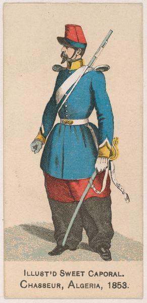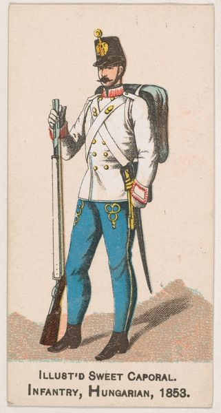 This chromolithograph of Prussian Artillery from 1840 was produced by the Kinney Tobacco Company as a promotional item for Sweet Caporal Cigarettes. The composition is dominated by the figure of a soldier, rendered with a keen eye for detail and a striking use of color. The Prussian blue of his coat, set off by the red trim and bright white trousers, creates a visually arresting image. The figure’s rigid posture and the sharp lines of his uniform project an aura of military precision and control. What is fascinating here is the interplay between art and commerce. The artist employs the visual language of military portraiture, traditionally associated with power and authority, to sell cigarettes. It invites us to consider how visual elements can be strategically deployed to construct meaning and shape consumer desires. The card reminds us that art serves multiple purposes, blending aesthetics with cultural and commercial narratives.