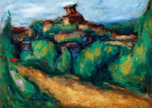 Béla Czóbel painted this landscape, titled 'French Landscape', with vibrant oil on canvas. The composition explodes with warm yellows and oranges, contrasted by cool blues and greens, creating a dynamic visual rhythm. Czóbel’s heavy brushstrokes and bold color choices reject traditional landscape painting in favor of a more subjective, emotional expression. His technique hints at Fauvist principles, where color is liberated from its descriptive function to become a primary conveyor of meaning. The architectural forms are simplified and abstracted. The painting challenges the viewer to reconsider the relationship between representation and reality. Rather than presenting a mirror of nature, Czóbel offers a constructed vision, an interpretation filtered through his artistic sensibility. It invites us to question not just what we see, but how we see.