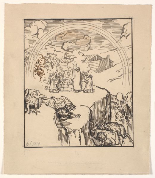 This drawing of Reynard bowing to King Nobel was made by Bernard Willem Wierink, but the date is unknown, and it's done in pen and brush. The colours in this piece are muted, mainly grey, black and white, with small accents of orange in Reynard, the fox. The marks are scratchy and sketchy, as if the artist is trying to find the image within the lines, not just represent it. This makes me think about the process of artmaking, where the image appears slowly, through trial and error. Look at the way Wierink renders King Nobel, the lion. It's not about being photorealistic, it's more about the essence of "lion-ness". The thick dark mane surrounding a benevolent face is all we need to understand. I get the feeling that Wierink’s approach to this piece, like so many illustrations, is about the narrative elements in the image. It reminds me a little of Aubrey Beardsley, but with a much more naïve and loose hand. What stories do you see in this image? How do they relate to the Reynard tales, or even, to our own times?