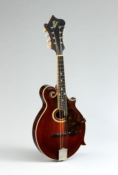 This is a mandocello, made around the turn of the century by the Gibson Mandolin-Guitar Manufacturing Company. What I see is a surface alive with subtle colour gradations; it’s as though the wood is breathing. Look closely, and you’ll notice the way the light catches the curves, highlighting the textures and polished grain. This is not just a pretty object, it’s a testament to craft, and a conversation between the materials and the maker. Every detail from the tuning pegs to the tailpiece, is rendered with care. This piece reminds me a little of work by guitar maker, Linda Manzer. Like her, the makers of this instrument have created something of great aesthetic value, and great functionality. In the end, it is the dialogue between these things that make the work so compelling.