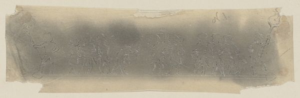 Editor: We’re looking at Ker Xavier Roussel’s "Women in a Landscape" from 1898, made with ink on paper using woodcut and etching. It’s dreamlike, almost like a frieze from an ancient civilization, but simultaneously modern. What's your interpretation? Curator: The power of Roussel's print, I think, comes from this tension. It references the classical world – the frieze-like composition, the pastoral setting – but does so through a symbolic language that speaks to the late 19th-century anxieties. Note how the figures, rather than engaging in heroic action, are absorbed in seemingly private rituals, evoking a sense of ennui. How do you see the role of women functioning within a social landscape at the end of the century? Editor: They seem like figures from a story I can’t quite grasp. Almost as though Roussel's presenting them as allegories. They’re present in the landscape but feel separate from it, disconnected from each other. Is this a response to specific social or political circumstances? Curator: Exactly. Roussel, like many artists of his time, was grappling with rapid social and technological changes. The traditional roles of women were being questioned, the rise of industrialization led to new forms of labor and leisure, all disrupting existing social orders. This sense of displacement is mirrored in the print's somewhat unsettling atmosphere, a critique, if you will, of modern life as the artist perceived it, in the late nineteenth century, questioning idealized representations. The Symbolist aesthetic sought deeper truths that went beyond appearances. What's interesting to you, reflecting upon this? Editor: That artists like Roussel responded to these shifts by creating such enigmatic works. I find it fascinating how an artist can capture such complexity through symbolic gestures and visual cues, and even how etching enables it. Curator: It gives one much to think about, doesn't it?
