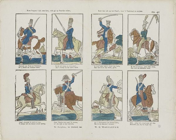 This print, made by Willem Bal, presents the Dutch cavalry, celebrating their service to the nation. Dominating each scene is the figure of the horseman, embodying courage and martial prowess. The horse itself is an ancient symbol, appearing in numerous cultures, from classical antiquity to the Renaissance. We see equestrian statues of Roman emperors, like Marcus Aurelius, and the enduring image of noblemen on horseback which signifies power and control. The rearing horse, a motif that suggests vitality, appears time and again. Consider the 'Hippocampus' from classical antiquity—a horse with the tail of a fish—a symbol that merges the earthly with the aquatic. The figure of the horseman evokes deep-seated, often subconscious, associations with virility, strength, and dominance. The horse becomes an extension of the rider's will, amplifying his presence. This image isn't merely about military might; it taps into our primal fascination with power and control. The symbols reappear, evolve, and resonate across time.