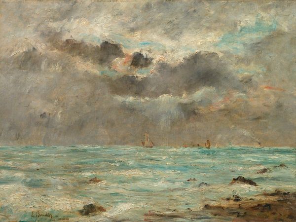 Jules Dupré made this painting, Calm before the storm, with oil paint on canvas. Oil paint is interesting stuff. Ground pigments are mixed with linseed or walnut oil; you can build up layers, glaze, and create effects impossible with fresco or tempera. Dupré masterfully wields the material. Look at how he’s worked in a range of tones to render the clouds above the sea. Notice the textural contrasts, thick impasto in the highlights, and thinly applied washes in the shadows. The whole painting shimmers. The brushwork becomes a record of the artist’s movement and activity. It’s an intimate, manual process, and yet also one that has become utterly conventional. Oil paint was the medium of choice for generations of academic artists. Dupré, though, was no academic. He turned this familiar material to his own purposes, in order to explore the sublime power of nature. In doing so, he brings a radical kind of handmade touch to the art of painting.