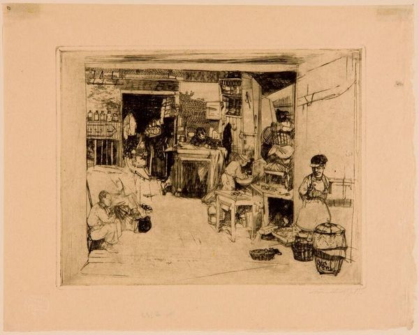 Editor: This is an albumen print from sometime between 1880 and 1900 titled, "Klanten bij een winkel in de souk van Tunis," depicting shoppers at a shop in Tunis. It's fascinating how it captures a moment frozen in time. What strikes me most is the sense of everyday life juxtaposed against the backdrop of what feels like a very different culture from today. How do you interpret this work? Curator: This photograph offers a glimpse into the complexities of Orientalism. It's tempting to see it merely as a neutral record of a Tunisian market. But consider who is behind the camera and their intentions. Photography during this period often served colonial interests, creating images that reinforced Western ideas about the "Orient" as exotic or subservient. Editor: So, you're saying it's not just a snapshot of a market, but a product of a power dynamic? Curator: Precisely. The photographer, in choosing this particular scene and framing it in this way, is participating in the construction of a narrative. Who are the people depicted? How might their own voices be silenced or misrepresented by this image? Notice the focus on the veiled women – how might this play into existing stereotypes? Editor: That makes me think about the lack of agency they have in the photo, being observed. Curator: Exactly. The act of photographing itself can be seen as an act of appropriation. It's crucial to unpack the layers of representation and ask whose story is being told, and who is left out. What can photography do now, after understanding that? Editor: I hadn't considered the power dynamics at play. This has given me a completely different lens through which to view these kinds of photographs. Curator: Understanding the historical and social context is essential. Only then can we begin to critically engage with the complexities of representation and the legacies of colonialism in art.