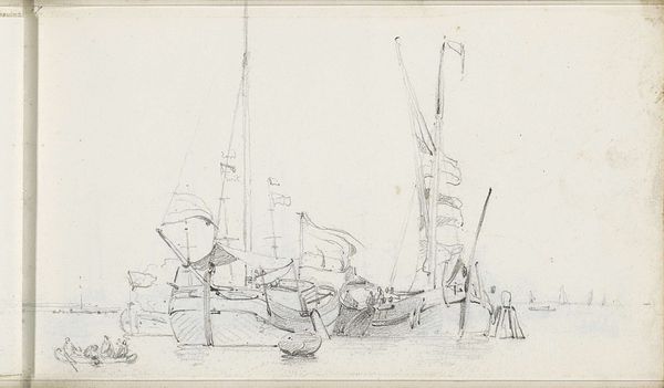This pencil drawing of figures on a sailboat was created by Petrus Johannes Schotel in the 19th century. Schotel lived during a time of significant social change in the Netherlands. Here, we see the intersection of maritime life with human experience. The figures on the sailboat, partially obscured, invite us to imagine their stories, their relationships to the sea, and their place in the social hierarchy of the time. Schotel, who came from a family of marine painters, focused on the emotional experience of those at sea. Whether portraying the everyday lives of sailors or the grander themes of exploration and trade, Schotel’s work captured both the romanticism and the inherent risks of maritime life. The sketch invites us to reflect on our connection to the sea, both as a source of livelihood and a space of personal transformation.