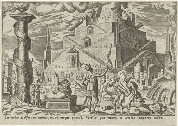 Editor: This is "Lente" – "Spring" – an engraving by Julius Goltzius, created sometime between 1575 and 1595. It’s a really busy scene, but the division between the elegant figures on the left and the laborers on the right strikes me. What do you see in this piece, especially when considering that social contrast? Curator: That's a crucial observation. Goltzius isn't just depicting a season; he's portraying a structured social order. Consider the way the wealthy are presented versus those who work. What does it mean that those of high social status seem completely detached from the labor? The artist positions them to essentially benefit from that labor, yet also distance themselves. Editor: So, it’s not just about springtime and growth but about who gets to enjoy that growth? The refined garden is made possible by the toil of the lower classes. Curator: Precisely! And it is more insidious. Their apparent refinement depends on the exploited labour. It is hard not to think about exploitation, and gender. Springtime often equates to themes of love, pleasure, and even licentiousness – a reference to Venus in the caption reinforces that association, but those things remain strictly within reach only for members of a very specific caste. Think about who is barred from that enjoyment. Where are the working women here? Editor: It's interesting how a seemingly innocent depiction of Spring reveals such a critical commentary on social and gender inequalities of the time. Curator: Exactly. The apparent "academic" nature of the landscape masks a deep interrogation of power, labor, and enjoyment that resonates even today. Editor: It makes me think about the systems that still operate like that. I'll definitely look at these images of landscapes differently. Curator: And that’s precisely why art history, viewed critically, becomes such a potent tool. It reflects not just history, but our present.