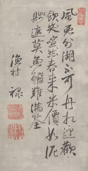 "Snow Swirling in the Winter Wind" was created by Miyahara Ekian, also known as Senso, during the 19th century. The image is an example of calligraphy, a key form of artistic expression in Japanese culture. Think about how Ekian, as a male artist in a society with defined gender roles, engaged in the intimate, refined practice of calligraphy. The artwork reflects the historical context of Japan during the Edo and Meiji periods, a time of social and political transformation. The poem conveys a sense of the stark, unforgiving beauty of winter. The text evokes a feeling of resilience and inner strength in the face of adversity. Reflect on how the artist balances traditional forms with his own emotional experiences. "Snow Swirling in the Winter Wind" encapsulates a moment of solitary reflection while engaging with the natural world, and asks us to consider the relationship between personal identity and cultural heritage.