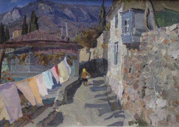 Alexandre Jacovleff's painting captures a scene in Le port de Calvi, filled with enduring symbols of human life and connection. The women at the bottom right, engaged in conversation, evoke images of the classical world, reminiscent of figures adorning ancient Greek pottery. This timeless posture represents connection and community, echoing through the corridors of art history. Further back, you can see a figure walking with their dog - a symbol of loyalty, companionship and guidance. A similar motif appears in ancient Egyptian art with Anubis, or in medieval paintings with the depiction of Saint Roch, their presence anchoring us to ancestral roots. The ship in the harbour, laden with historical weight, signifies journeys of trade and exploration. A potent emblem of passage, it invites introspection on our own life's voyage, stirring emotions of longing and adventure. These emblems remind us of the cyclical patterns of human existence, revealing shared experiences that bind us across time.