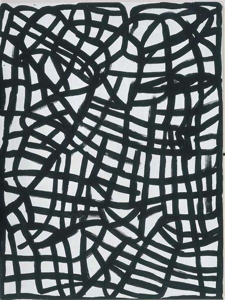 Abie Loy Kemarre's 'Untitled, 99G201' presents us with a mesmerizing grid, a matrix of white lines undulating against a dark background. This pattern, seemingly simple, echoes through time, recalling the ancient motif of the labyrinth. The labyrinth, a symbol found in cultures from Crete to the American Southwest, represents a journey, a quest for truth, or a passage through life's complexities. Here, Kemarre's distorted grid suggests a landscape not of stone corridors, but of a shifting, living terrain. Like Ariadne's thread, these lines may guide us through the chaos, but there is no promise that we will find the Minotaur, or ourselves, at its center. Consider how such a grid appears in Renaissance tapestries, symbolizing order and control, yet here, it ripples, defying perfect geometry. The emotional resonance lies in this tension: the comfort of structure versus the unease of its distortion. It speaks to the subconscious pull between our desire for stability and the inevitable flux of existence, a visual echo of the eternal dance between order and chaos. The image evokes a sense of disorientation, yet it compels us to follow the shifting lines, to trace the memory of patterns embedded deep within the human psyche.