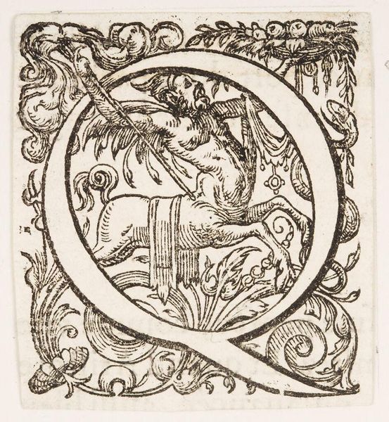Editor: This anonymous piece, simply titled "Letter B," is filled with striking imagery. What symbols do you see at play here? Curator: The "B" itself becomes a boundary, containing narratives of fall and redemption. Note the figure cradled by the curve, suggesting divine protection, juxtaposed against scenes of earthly struggle and perhaps even damnation. The images carry potent emotional weight. Editor: So, the letterform isn't just a letter, but a stage for a larger drama? Curator: Precisely! It speaks to a time when every image was imbued with meaning, shaping cultural memory through visual language. Each element resonates with its own history. Editor: I never considered how much could be packed into a single letter. Thanks for helping me see that! Curator: My pleasure. It is amazing to discover the ways we can carry symbolic meanings across time and history!