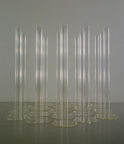 Curator: Stephen Willats' "Light Modulator No.2" is a sculpture utilizing perspex and painted wood. Editor: It has a sort of quiet austerity. The vertical planes create an environment, a structure, a stage. Curator: Exactly! Willats is interested in systems, how information flows and how people interact within environments. Editor: The perspex introduces a sense of transparency, but there’s also a barrier, a filter…a veiled look. Curator: Willats often explores how we perceive and navigate the built environment. Editor: It feels like a model, perhaps for a building or a social space. There's an almost unsettling feeling of control. Curator: Maybe that's Willats prompting us to look beyond the surface.