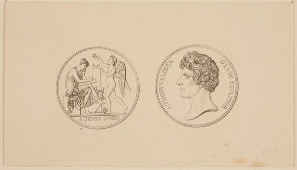 Erling Eckersberg created this un-dated medal of King Frederik VI using engraving. The process involves meticulously incising an image onto a hard surface—traditionally a metal plate—with tools like burins or gravers. The fine, deliberate lines that define the king's profile and the allegorical figure are a testament to the engraver's skill. Notice how the material's capacity for holding detail influences the overall aesthetic, capturing not just likeness but also imbuing the subject with a sense of importance. Engraving has historically served purposes beyond art. The technique was essential for mass production, think of currency, official documents, or even printed illustrations. This medal exists at an interesting intersection: it employs a technique often associated with reproducibility to create a unique object honoring a monarch. It makes you consider how craft and industrial processes can both reinforce social hierarchies and democratize access to images and information.