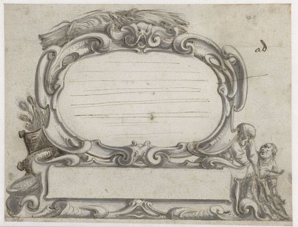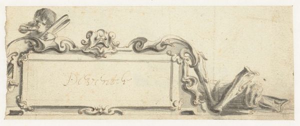 Pieter Jansz. created this drawing, "Cartouche met aan weerskanten herders en koeien," using pen and gray ink. The cartouche, a decorative frame for an inscription, is flanked by pastoral scenes. On either side, we see figures tending to cattle, evoking a sense of Arcadian simplicity and harmony with nature. The shepherd and cow are ancient symbols. In classical antiquity, the shepherd was an allegorical figure representing leadership and care, echoed later in Christian iconography with Christ as the Good Shepherd. The cow, a symbol of nourishment and fertility, has roots stretching back to ancient Egyptian and Indian religions, where bovine deities were revered. Consider how the shepherd motif reappears in Renaissance paintings, idealized and imbued with humanist values, or in Baroque art, charged with dramatic emotion. This symbol resurfaces, carrying layers of cultural memory, its meaning subtly altered by each epoch's unique psychological landscape. The enduring presence of these symbols speaks to our collective subconscious, where primal themes of care, sustenance, and our relationship with nature resonate deeply. The emotional power of these images lies in their ability to connect us to these ancient, persistent narratives.