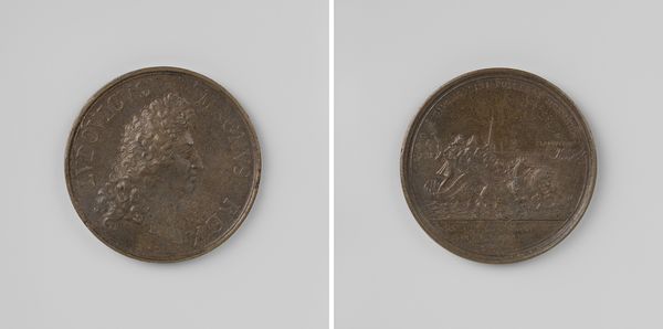 This is a lead medal made in 1774 by Theodorus Victor van Berckel. Its circular form, a deliberate choice, echoes the cyclical nature of remembrance. On one side, a female figure, possibly an allegory for Leiden, sits triumphantly atop a lion, symbols of victory and strength. The composition uses these symbols to evoke a sense of civic pride and gratitude. On the other side, another female figure stands before an altar, perhaps representing faith or remembrance, with outstretched arms that invite reflection. The medal’s creation aligns with Enlightenment ideals, which emphasized reason and civic virtue. Medals like these functioned as semiotic tools, communicating specific political and moral values. This piece encourages not just historical recall, but also the active engagement with Leiden’s civic identity.