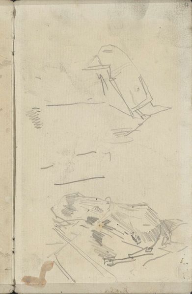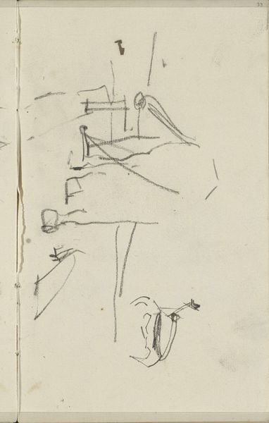 George Hendrik Breitner created this sketch of figures and saddled horses using graphite on paper. Here, we see how the artist takes a commonplace material - graphite - and employs it to capture fleeting moments of everyday life. The inherent qualities of graphite, its soft, almost greasy texture, allows Breitner to create a range of tones and textures with quick, economical lines. These marks capture the essence of the figures and horses with a sense of immediacy. The material and the method in which it has been applied, lends itself to the sense of capturing a fleeting moment, as if glimpsed from a window, or on a quick walk through the city. By focusing on the everyday and using modest materials, Breitner challenges traditional distinctions between fine art and craft. He elevates the mundane to a subject worthy of artistic attention, showing us the value in the ordinary. This reminds us that the true essence of art lies not in expensive materials or complicated techniques, but in the artist's ability to see and share the beauty in the world around us.