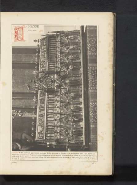 Editor: This is an image of the Sint-Columbaretabel in the Sint-Columbakerk te Deerlijk, dating from before 1889. It looks to be a photograph of a wooden relief sculpture. The composition is so dense! There are so many figures packed into each scene. What catches your eye in this work? Curator: The formal arrangement is quite striking. Observe the compartmentalization; the division of space into discrete narrative cells. Each frame operates as a microcosm of the larger, unified structure. Consider the balance between the heavily ornamented borders and the dense figuration within. Does the ornamentation enhance or detract from the narrative clarity, in your estimation? Editor: I see what you mean about the compartments creating that structure. I initially felt they were cluttered but, you are right, they create separate instances which add up to a whole story. Curator: Precisely. The texture, too, commands attention. The varying depths of the relief, the contrast between smooth and roughly hewn surfaces… It all contributes to the overall visual dynamism. What does the use of light and shadow within these panels suggest to you? Editor: It brings out the drama of the story and helps distinguish the figures from the background! I hadn't thought about that. I guess it helps organize each little narrative panel. Curator: Indeed. This play of light and shadow guides the viewer’s eye. It animates the otherwise static form and leads us through the scenes, encouraging contemplation. In all, a work that richly rewards close formal observation. Editor: I've definitely learned how to appreciate the craftsmanship and underlying composition of this piece. Curator: And I’ve been reminded of the power of structured storytelling through art.