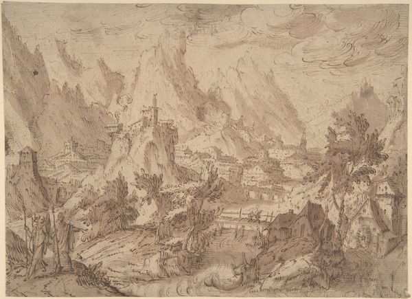 Barbara Regina Dietzsch created this drawing, "Brand in een dorp", likely sometime in the 18th century. At a time when women artists were often confined to specific genres, Dietzsch was celebrated for her versatility. While she was best known for her detailed botanical and ornithological illustrations, here she captures a village consumed by fire. It’s impossible to ignore the charged atmosphere; the fiery scene evokes a sense of chaos and destruction. The dark sky intensifies the emotional impact, and the silhouettes of people in the foreground seem to bear witness to the unfolding tragedy. This image raises questions about how people perceive and react to disaster. It speaks to the shared human experience of vulnerability and the potential for loss, which resonate across different social and cultural contexts. Dietzsch invites us to reflect on how communities cope in the face of overwhelming events.