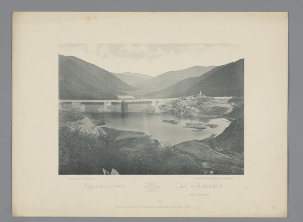 Curator: This gelatin silver print by Knud Knudsen, titled "Parti fra Kongsberg (=Koningsberg), Noorwegen", captures a scene in Norway sometime between 1870 and 1900. The subdued tones give the impression of looking into the past. Editor: My first impression is the dynamism within a muted palette. The cascading water is so fluid and contrasts beautifully with the static, structured architecture on the bank. Curator: That interplay is significant. The buildings and structures along the water's edge speak of human attempts to harness and organize nature. The river, ever flowing, represents time and the unstoppable forces of nature that both provide and shape the environment and lives there. Editor: The composition subtly directs the eye, wouldn't you agree? The dark building on the left serves as an anchor, guiding us along the shoreline and eventually into the distance, with its receding mountains. I love the gradation of tones that add depth. Curator: Absolutely, that strategic placement speaks to something deeper. Perhaps this reflects Norway's increasing industrialization during this era, a subtle reference to mankind’s evolving relationship with nature. How humanity both depends upon, and at the same time, exploits nature. The buildings, set against the expansive, untamed landscape of the river, tell an interesting story. Editor: The tonal range throughout really does lend an air of tranquility despite the power implied by the falls. Perhaps that peace results from the compositional harmony: land, water, sky all in balance. Curator: Yes, and that visual harmony speaks of cultural values. Knudsen's photograph offers more than a landscape, though, doesn’t it? He reveals the symbols of both natural endurance and human striving within the same frame. The river's constant motion, the unchanging landscape, against these buildings, are monuments to our own development. Editor: Agreed, thinking about this as a record, it freezes a critical point in history, but still transcends its period, prompting us to reflect on the forces that shape both landscapes and the built environment. Curator: It's remarkable how Knudsen uses light and shadow to give the image an almost timeless quality. It speaks volumes about our ongoing negotiation with the environment, a dialogue as pertinent today as it was then. Editor: Seeing how these elemental aspects form an almost understated drama allows us to appreciate how the form embodies, and echoes, the tensions represented within the landscape itself.