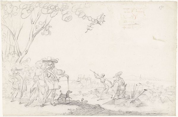 Harmen ter Borch made this drawing of three shepherds in conversation with pencil on paper in 1653. Pencil is a humble material, really just graphite, but it's capable of exquisite subtlety. Notice how Ter Borch coaxes a range of tones and textures from it, the dense hatching of the tree contrasting with the lighter lines defining the sheep. The choice of such a direct, unpretentious medium speaks to the subject: the everyday lives of working people. We see the labor, the long hours spent in the field, etched in the very lines of the drawing. The figures are not idealized but shown with a casual realism. While the subject matter is pastoral, Ter Borch's focus is on the human element, the quiet dignity of these rural figures. It is a reminder that even the simplest materials, combined with skill and attention, can yield profound insight into the human condition. This work challenges any rigid boundary between fine art and the depiction of working life.