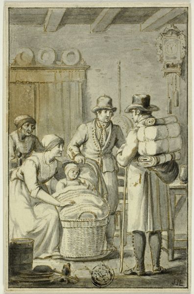 This print, made by Jacobus Smies in the late 18th or early 19th century, is a window into the material culture of its time. It's an etching, a printmaking process that involves using acid to cut lines into a metal plate, which is then inked and pressed onto paper. What I find interesting is the basket, a form made by human hands. A person, probably a woman, would have woven the strips to make it strong enough to contain a child. Baskets speak of sustainability, skill, and the essential role of craft in everyday life. The textiles, too – consider the labor required to produce the rolled blankets on the traveler’s back. We are reminded of the embodied energy in these ordinary materials. Looking closely at the texture of the etching, you see how the labor of the printmaker echoes the labor of the basket weaver, and the labor of the spinner, weaver and tailor who made those blankets and clothes. It reminds us that images, like objects, have a deep connection to the economic conditions of their making.
