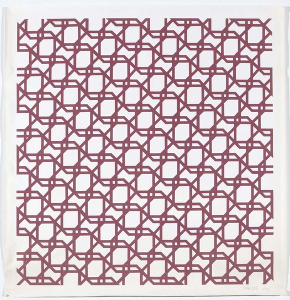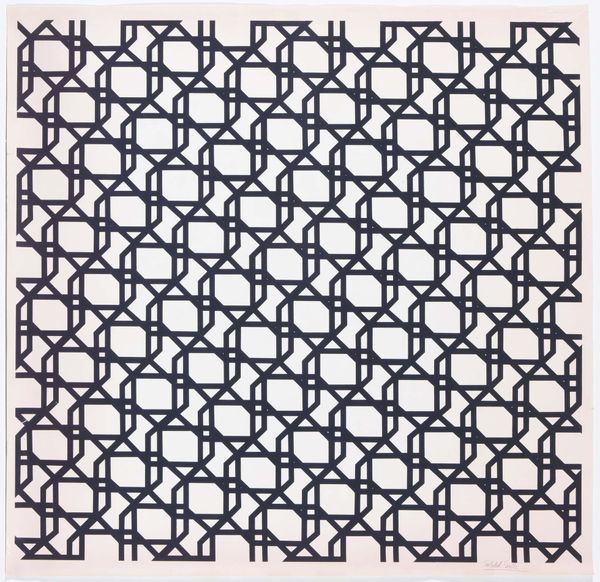 Curator: This is an untitled work by Soledad Sevilla, created in 1972. The medium is listed as textile. Editor: It has an oddly calming effect. Like staring at cane weaving. There is a kind of handmade feel despite the stark geometry and repetition. Curator: Yes, that handmade feel is interesting, given its precise nature. Let’s consider that it’s textile work. I mean, traditionally textiles were associated with the domestic sphere and were devalued as craft, as labor. Sevilla is clearly working with that tension, elevating a functional design to an art form through careful design. Editor: I see an echo of something older. It feels like an abstracted Moorish tile pattern – you know, that kind of geometric intricacy you find in Islamic art. That conveys so much about order and cosmos, but without depicting any literal imagery. Curator: Good point! Consider that Spain had that long, complex relationship with Moorish culture. I like your point, that repetition suggests a larger whole – something ordered beyond the physical square of the textile. But is Sevilla acknowledging that lineage deliberately? Editor: Maybe, maybe not consciously. But symbols linger in the cultural memory. That interconnectedness speaks to larger cultural exchanges as well. This suggests an endless network, almost an ecosystem of visual patterns. Curator: Precisely! Textile production and trade historically create their own global networks as well, so even the material here becomes a connector of ideas. It raises important questions. Who does this remind one of in terms of the division of labor and artistry? And in a work entitled "Untitled," this leaves a lot open to interpretation! Editor: Absolutely. Thinking about these patterns makes you conscious of all the unseen hands that shape the visual world. And that in and of itself carries a potent social charge. Thank you for illuminating Soledad Sevilla’s fascinating visual art piece. Curator: A fantastic consideration and reading.