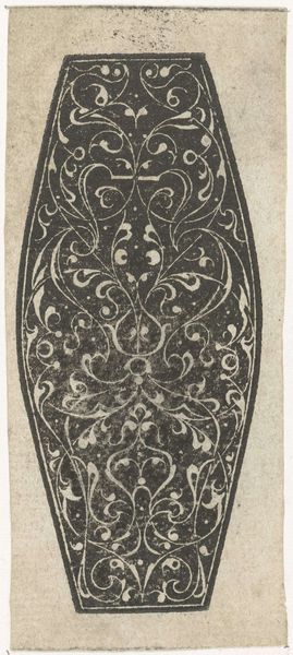 Curator: This is a print by Theodor de Bry, dating from 1592-1593. The artwork is titled "Design for a Sword or Dagger Handle with Putto-Head and Lion's-Head Masks," and is currently housed at the Metropolitan Museum of Art. Editor: My first impression is one of incredibly intricate detail for something that would adorn a weapon. It’s both beautiful and slightly unsettling. Curator: Yes, de Bry was working during a time when even functional objects like swords were seen as canvases for artistic expression and displays of status. We see a lot of Mannerist influence here with the dense ornamentation. Editor: The symbolism feels so deliberate. The putto, or cherubic child, at the top contrasts sharply with the fierce lion masks below. What would that juxtaposition have signified to viewers at the time? Curator: The contrast you point out, I believe, suggests a common Renaissance theme: the tension between innocence and power, perhaps the need to temper strength with wisdom and perhaps divine guidance. Swords themselves had powerful social implications. Their designs communicated authority and were tools to solidify power. Editor: It’s a fascinating peek into the cultural mindset. The squirrels, snails, even the floral motifs… do they all carry some coded meaning? Curator: It's highly likely, particularly given the fashion for emblems and allegorical imagery during that period. The animals can reference certain human attributes; squirrels are associated with thrift and diligence. Editor: Knowing that this design might have ended up on a weapon carried by someone in power gives it a chilling dimension. What was merely decorative also broadcasted societal power structures. Curator: Exactly. The art object, like the sword handle, is so intricately intertwined with the values of the time and power it represented. Editor: Thinking about the lasting impact these images can have, I will probably see weaponry very differently moving forward. Curator: Precisely. The sword handle shows that design served not just to decorate but to deeply instill and reflect shared beliefs about valor, duty, and power.