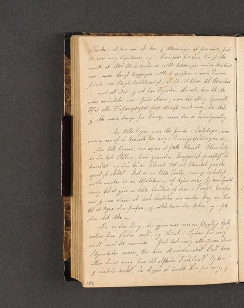 Editor: This is "Rejsedagbog," a page from Johan Thomas Lundbye's travel journal from 1846, held at the SMK. It’s ink on paper and textile, and it’s covered in dense script that I, sadly, can't decipher. It evokes such a sense of intimacy, peering into the personal reflections of an artist over a century ago. What aspects of the image spark your curiosity, or even a sense of connection, curator? Curator: Ah, Lundbye's journal! It's not just an artwork; it's a portal, wouldn't you say? It pulls you into his very experience of being in Italy, doesn’t it? Do you get a sense of what it might have been like, to keep a handwritten journal filled with first impressions, little drawings from direct observations, scribbled with such immediate charm. Look at that hand. What does it communicate to you? Impulsive writing...do you think it reflects careful preparation? Editor: I'd say it looks very spontaneous! It’s that density – the writing practically spilling over – it feels immediate, as if capturing thoughts before they vanished. Curator: Precisely! And this immediate quality – this feeling, wasn’t always prized. There were other contemporary artists that believed in something called 'nature-study'... They took nature quite seriously. However, it didn't quite come to the same spontaneity here. And here we see it. Don't you think its the difference in 'attitude' that divides the more traditional nature studies from this one? Editor: So, he's documenting not just the external world but his internal one, his impressions? It does feel rather modern somehow, in its personal expressiveness. Curator: Exactly! This glimpse into his travels feels deeply human and… relatable, don’t you think? He is in fact showing a Romantic spirit of finding true experience. Lundbye wasn't simply recording facts. He’s inviting us to join his journey! It makes me feel that traveling is far better when there's just pure, human adventure to look forward to. Editor: This has given me an idea of the human element that art and traveling can bring forth... I can't wait to look through my journal after this...Thank you!